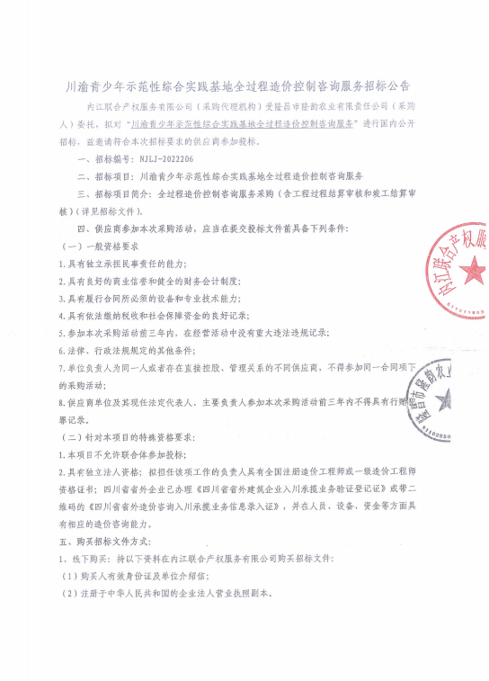 川渝青少年示范性综合实践基地全过程造价控制咨询服务招标公告