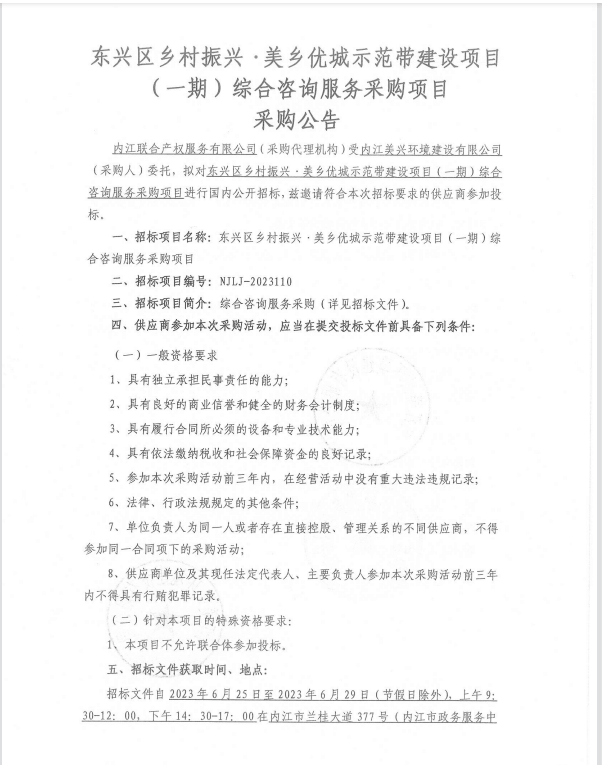 东兴区乡村振兴·美乡优城示范带建设项目(一期)综合咨询服务采购项目采购公告