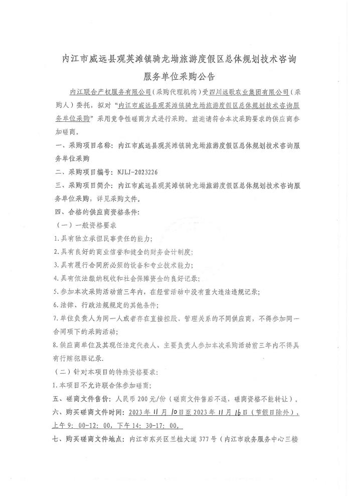 内江市威远县观英滩镇骑龙坳旅游度假区总体规划技术咨询服务单位采购公告