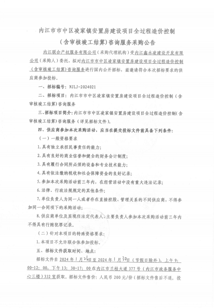 内江市市中区凌家镇安置房建设项目全过程造价控制(含审核竣工结算)咨询服务采购公告