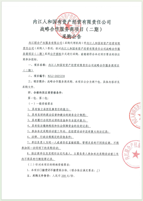 内江人和国有资产经营有限责任公司战略合作服务商项目(二期)采购公告