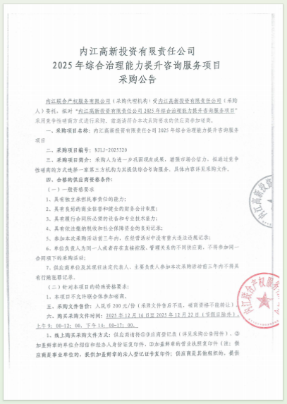 内江高新投资有限责任公司2025年综合治理能力提升咨询服务项目