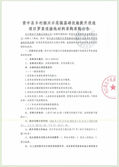 资中县乡村振兴示范镇基础设施提升改造项目罗泉连接线材料采购