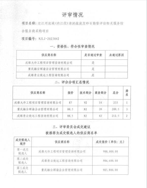 沱江河流域(内江段)清淤疏浚及砂石勘察评估相关服务综合服务商采购项目结果公告